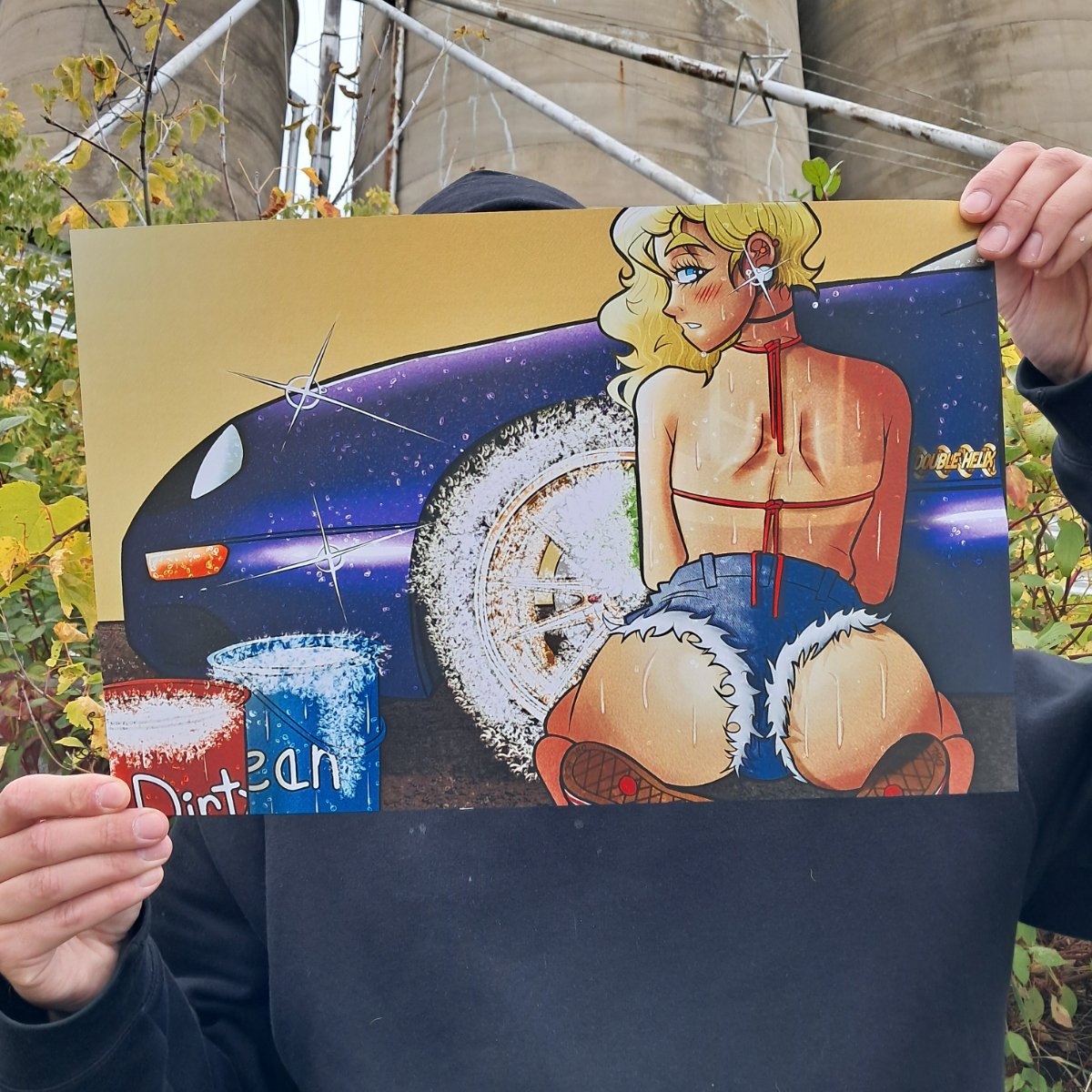 Cami; a gijinka girl based on my 2000 Chevy Camaro washing her car on a nice hot summer day.
