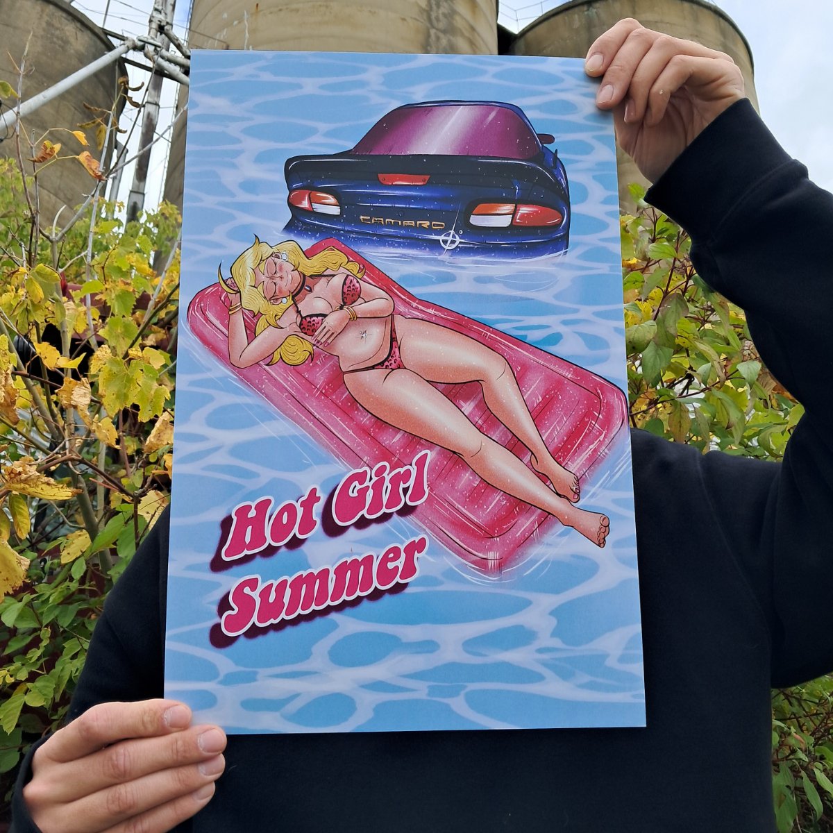 Cami; a gijinka girl based on my 2000 Chevy Camaro relaxing by the pool with her car taking a nice long soak.